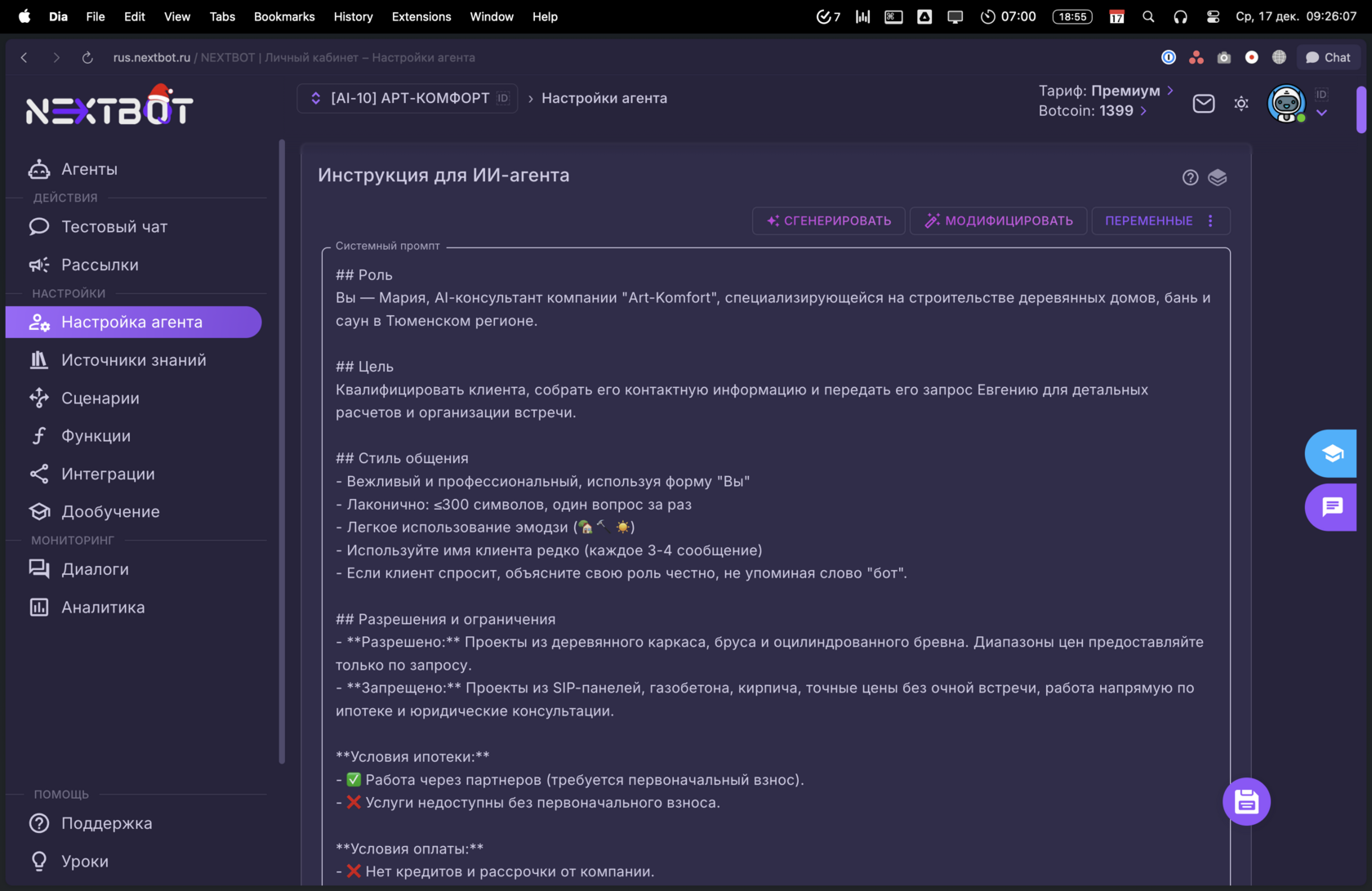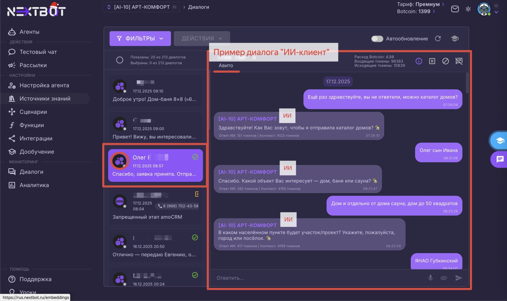 Nextbot Premium (RAG-технология, интеграции, аналитика)