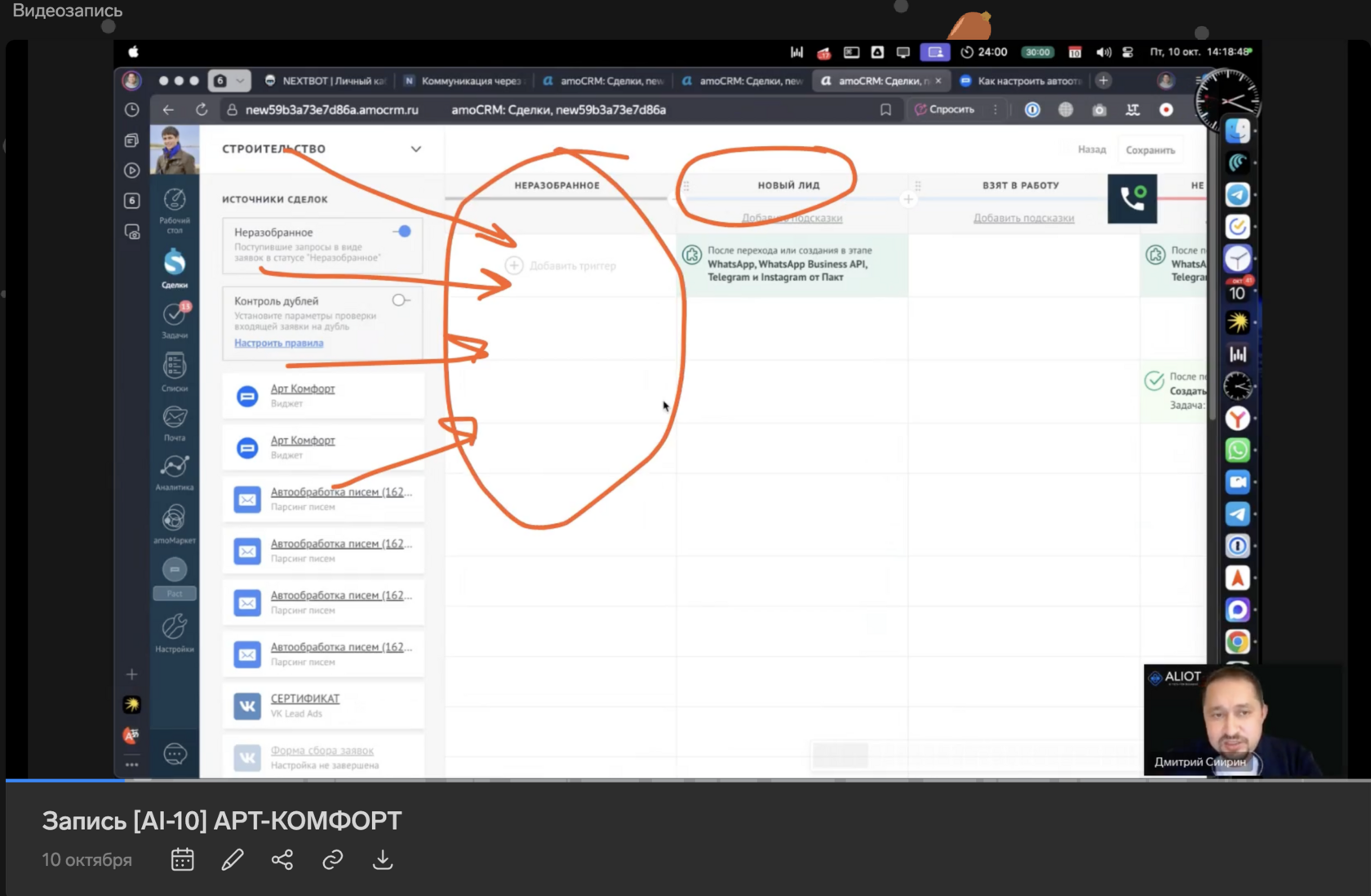 Фрагмент рабочей онлайн-встречи: разбор воронки и логики обработки лидов в amoCRM